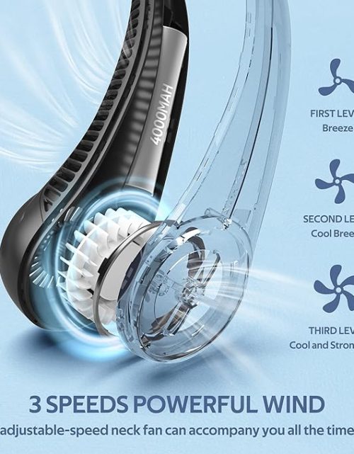 • Portable Neck Fan, Hands Free Bladeless Fan, 360° Cooling Personal Fan,Wearable Quiet Fan for Outdoor Indoor, Birthday Gifts for Men Women Mom Dad, 4000mAh Battery USB Rechargeable, 3-Speeds(Black)